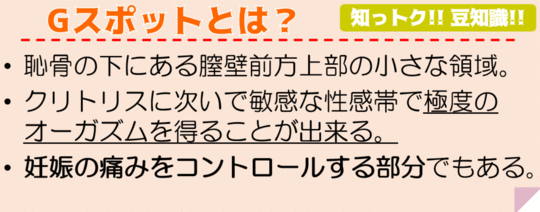 膣口から4~5センチ上に入ったお腹側に、ザラッとした指ざわりの場所があります。