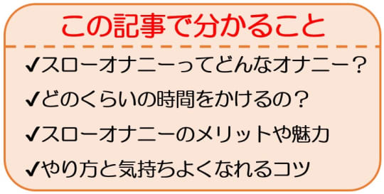 射精までにゆっくりと時間を使ってオナニーする、スローオナニーの魅力を紹介します。