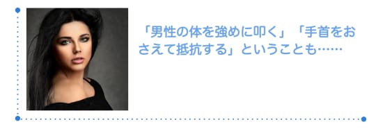 女性の手が自由に動く状態ならば、「男性の体を強めに叩く」「手首をおさえて抵抗する」ということも可能です。