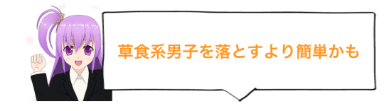 少し男性の背中を押してあげるだけで、セックスを狙ってくれるので草食系男子を落とすよりも簡単かもしれません♡