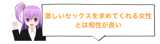 ですから、同じように激しいセックスを求めてくれる女性とは相性が良いと考えるのです。