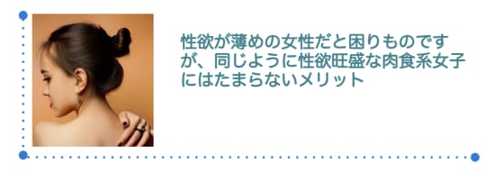 性欲が薄めの女性だと困りものですが、同じように性欲旺盛な肉食系女子にはたまらないメリットです♡