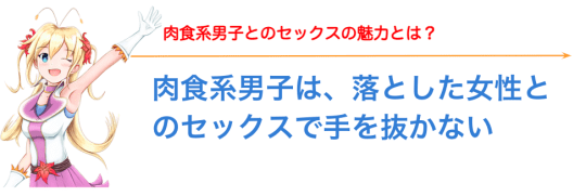 肉食系男子の中には、異性を落とすまでは肉食系だけどセックスは草食系…という男性もいますが、そういった男性はこの言葉には反応しないでしょう。