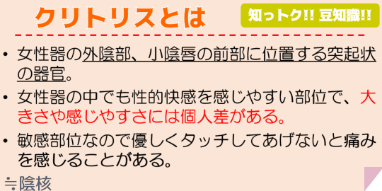 クリトリスは皮膚が薄く、多くの神経が集中しているので快感を得やすく、上手く攻めることでかなりの快感を味あわせてあげることが出来ます。