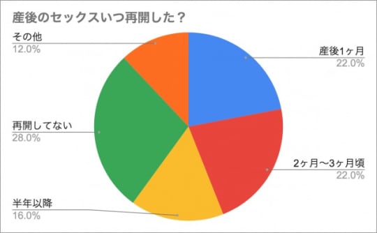 「産後のセックスいつ再開した?」というアンケートを取ったところ、28%の方が未だにセックスを再開していないという驚きの結果が出ています。
