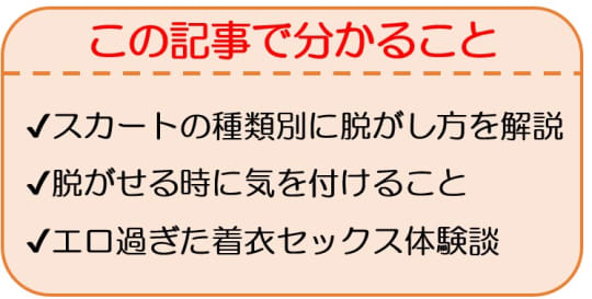 ここからはスカートの種類別にどんなスカートなのか、そしてセックスするときに気をつけることについて詳しく紹介していきたいと思います。