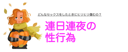 何日も連投でセックスしたような場合も、ヒリヒリとして痛むようになってきてしまいます。