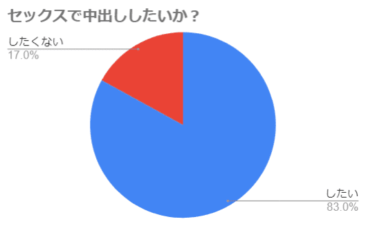 男性に「中出ししたい?」と尋ねてみると、こういう結果が出ています。男性の本能なのか、中出ししたいって男の人が半数以上いることが分かりますよね。