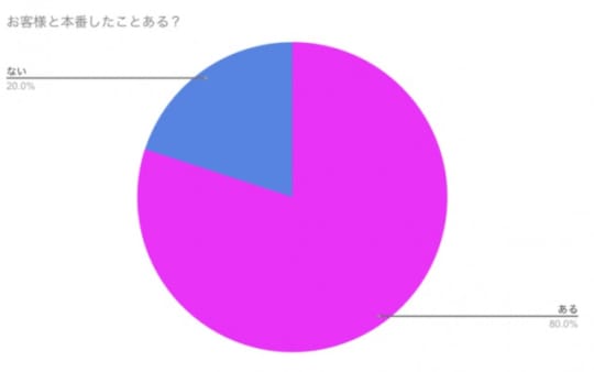 Twitterを利用しているデリヘル嬢の人に「お客様と本番したことある?」とアンケートを100名に実施した結果です。