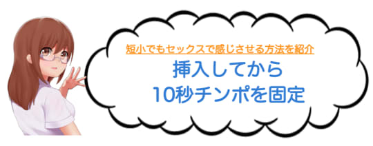 女性の膣はチンポのサイズに馴染むようにできているんです。なので、短小だと思っている男性は、挿入後にすぐにピストンせず、10秒くらい膣に馴染ませてからゆっくりピストンを始めることをオススメします。