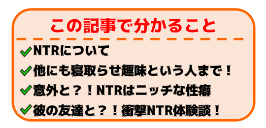 しかしながら、NTRがただ現状として起こってしまった出来事ではなく、中にはNTRが趣味と言う人も存在するんですよね。