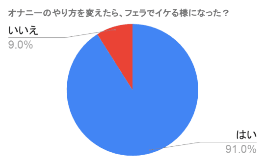 アンケートの結果、91%の男性がオナニーのやり方を変えたら、フェラでイケる様になったと回答しています。