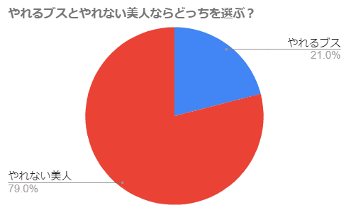今回は男性100人を対象に「やれるブスとやれない美人ならどちらのほうがいいか」とアンケートをとってみました。結果は下記の通りです。