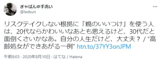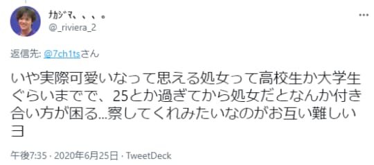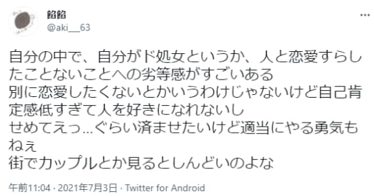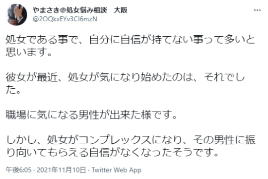 自分の体を大切にしているので悪いことではないのですが、あまりにガチガチに構すぎているが故に処女をこじらせてしまったのでしょう。