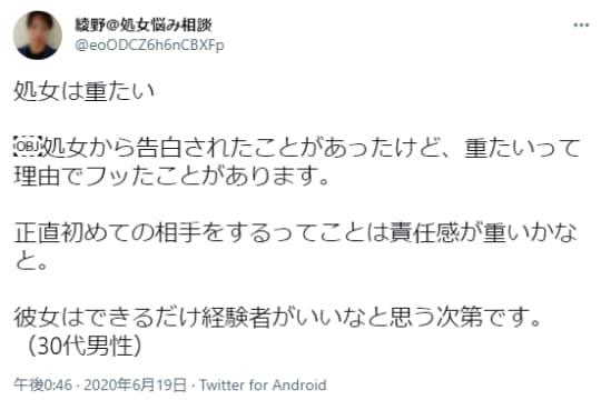 やはり30歳になっても初体験を終わらせていないのは、男性からしたら重いと感じてしまうようです。