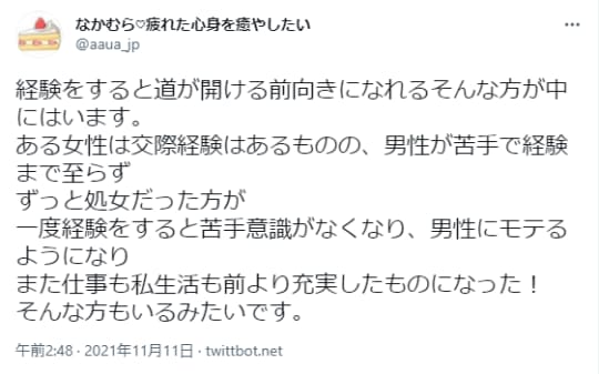 人それぞれセックスの経験がないのは理由が違いますし、余計なお世話だとは思いますけどね(汗)でも男性からしたらそう思われてしまうんです。