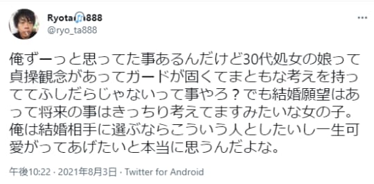 自分が結婚を考えている相手だったら、処女でも全然構いません