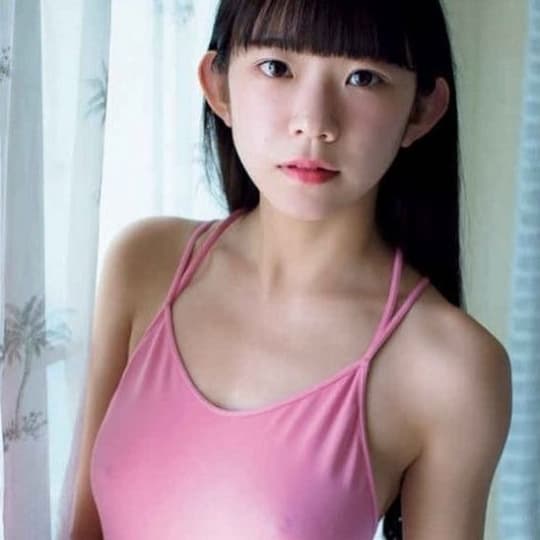 彼女自身の初の写真集となる水着での撮影ですが、写真集よりも先に、この水色の水着に映し出す乳首が話題です。!