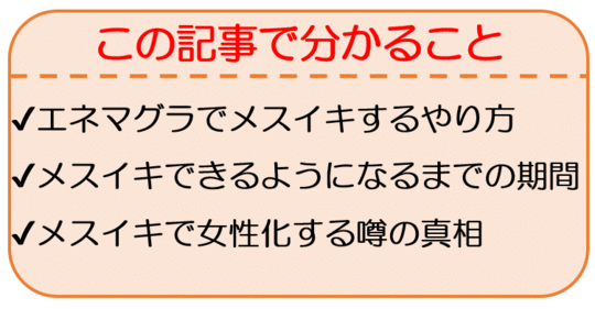次の項目からエネマグラの具体的な使い方は解説いたしますが、そもそもエネマグラでメスイキ達成は可能なのか?