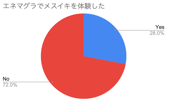 エネマグラユーザー50人にオンラインで匿名を条件にアンケートを取ったところ、エネマグラユーザーでメスイキできているのは3割弱にとどまっているとの結果が出ました。