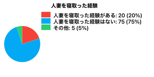 新宿で男性約100人にインタビューをしてアンケートした結果、人妻を寝取って経験のある男性は全体の20パーセント程度でした。