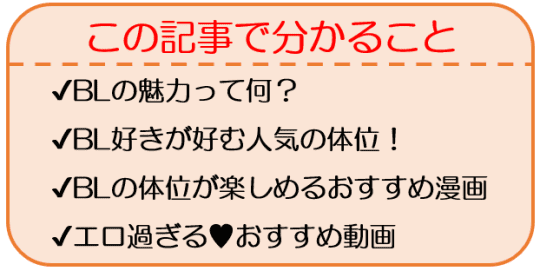 今やひとつの人気ジャンルとして確立した「BL(ボーイズラブ)」。BL好きの女性には、男性同士のさまざまな絡みや体位を見るのが楽しみという人も多いことでしょう。今回は、BLで魅力的な体位を紹介。さらにBL好きにおすすめの、体位を堪能できる漫画や動画も紹介します。