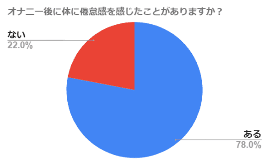 上記のグラフはよくオナニーをしている男性女性に聞いた「オナニーをした後に体に倦怠感を感じたことがありますか?」と言うアンケートを取った際の結果になります。