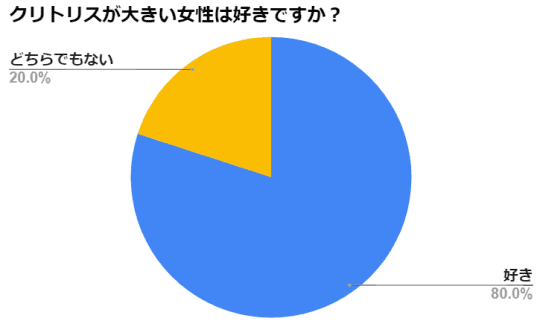 クリトリスが大きい女性が嫌いと答えた人はいませんでした。ほとんどの男性が好きと回答していますね。