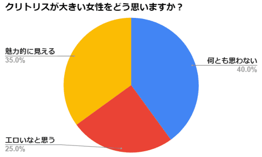 そこでクリトリスが大きい女性を見てどう思うか、20歳から30歳前半の男性100名にネット上でアンケートを取ってみました。