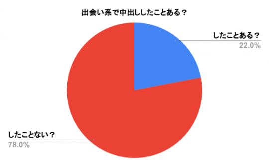 22%の女性が出会い系で出会ったお相手と中出しをしたことがあると答えていますよ。