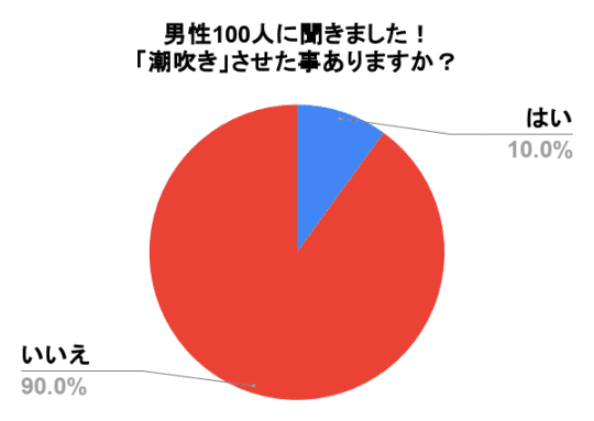 なんと、女性に潮吹きをした事がある男性はたったの1割とめちゃくちゃ少ない!それだけ女性に潮吹きさせるのは難しいんです、、、。