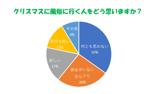 アンケートによると、クリスマスに風俗に行くことを「あり」「何とも思わない」と回答している人が多数いることがわかります。