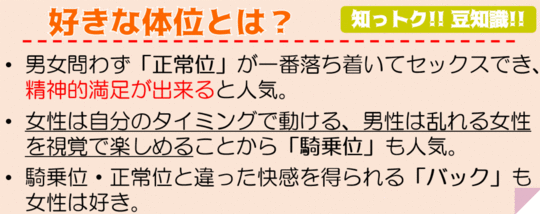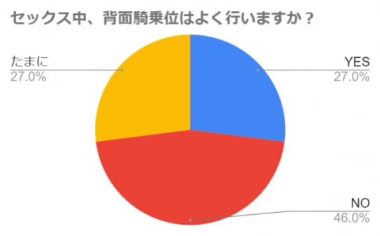 上のグラフを見てもわかる通り、意外とやったことがないという人が多いんですよね。騎乗位は男女ともに人気の体位ですが、わざわざ背面で・・ってっことが少ないみたい。