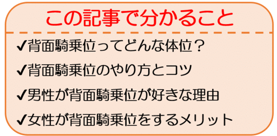 男性の立場から背面騎乗位が最高であることをお伝えしました。もちろん男性ばかりじゃなくて、女性にとってもメリットはあるんですよ♡