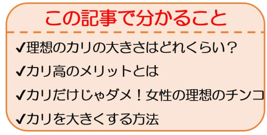 カリ高が男の名器と言われているということはわかりましたが、どれくらいの段差(カリの出っ張りと竿の高さの違い)があると、カリ高と言えるのでしょうか?そして、気になったのが、カリさえ大きければ竿は細くてもいいのか?ってこと。