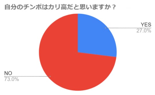 2割~3割弱の割合で、カリ高のチンポを持つ男性がいる模様・・・ただし、自己申告ですがね。
