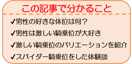 ここまで読んできて、自分もスパイダー騎乗位をやってみようかな・・・激しい騎乗位で彼をイカせてみようかな・・と思ったあなた☆