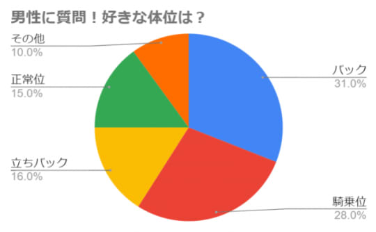アンケートの結果を見ると、男の人が好きな体位は1位がバック。ほぼ同じくらいの割合で2位に騎乗位となっています。