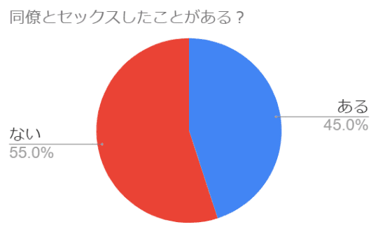 こちらからもわかるように、同僚同士でセックスをした経験がある人はそれなりにいるようですね。
