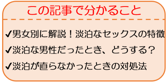 いろんな努力をしても、男性の淡白度合いに変化が見られ無かったときは、今後も変わることは、ほぼ無いでしょう。