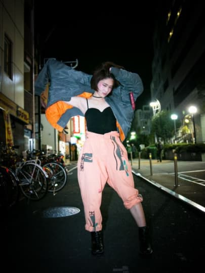 黒のキャミソール姿のコムアイさんです。