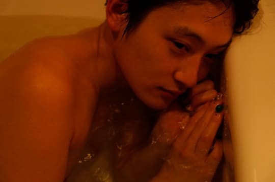 お風呂の浴槽で視線を落としているコムアイさんがめちゃくちゃセクシーな1枚です。