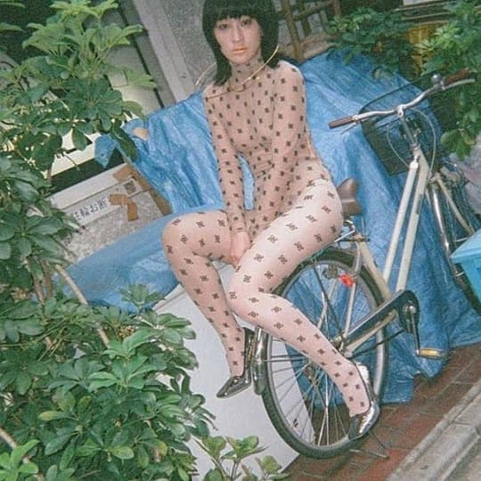 全身タイツ姿のコムアイさんです。