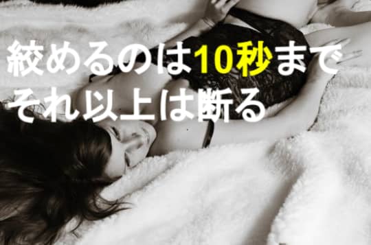 一度にやってOKな首絞めの長さは10秒程度!ただ、当然人によって首絞めに耐えられる時間は違うので、もしかすると10秒でもキツい場合もあります。