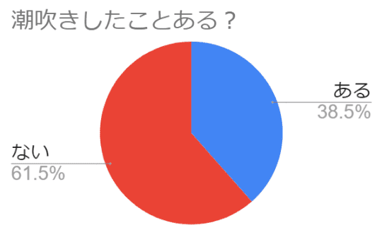 関東在住のセックスが好きな女性を対象に、潮吹きの経験があるかどうかを調査し、結果をグラフにまとめました。