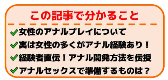 アナルセックスの第一歩は、アナルにローションや愛液を、たっぷり付けて指やオモチャなどを使い、アナルにモノを入れて痛みに慣らしていきます。