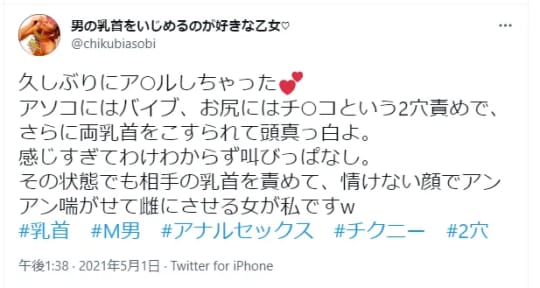 ちなみに、アナルは男性とのセックス以外でも触ることが出来る部位です。