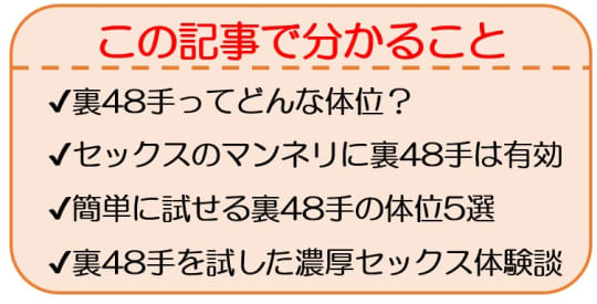 裏48手でのセックスは、マンネリも解消され、メリットだらけでしたね♪