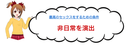 ホテルや外、時には大人のおもちゃを使ったりいつもしているセックスと違うシチュエーションはワクワク感や興奮を覚えさせて、いつものセックスをもっと気持ち良いセックスにしてくれるきっかけになります。外でのプレイやおもちゃを買わなくても下着を変えたり、部屋の電気を暗めにしたりとちょっとした雰囲気の違い作る事だけでもセックスは劇的に変化しますよ。