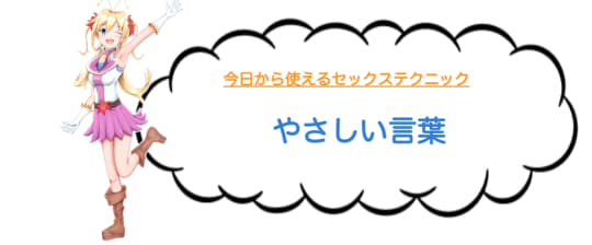言葉も一つのテクニックです。いやらしい言葉優しい言葉とセックス中は使い分けも大事ですが、私の経験上優しい言葉を多く使った方が相手に喜ばれます。「痛くない?」「挿れてもいい?」など相手の体を気遣った言葉を中心に使っていく事で「自分は思われている」と実感します。言葉で濡らすような上手い話術はいりません。まずはこのちょっとした気遣いを言葉にしてみましょう。